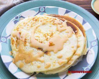 Американці називають панкейки сніданком вихідного дня. Тож це ідеальний рецепт, щоб порадувати близьких смачною стравою зранку. Для більш насиченого смаку використовуйте молоко та масло середньої або найвищої жирності. Кількість цукру регулюйте залежно від свого смаку, але зважайте на те, що карамельний соус солодкий. Подавати панкейки також можна з ягодами.