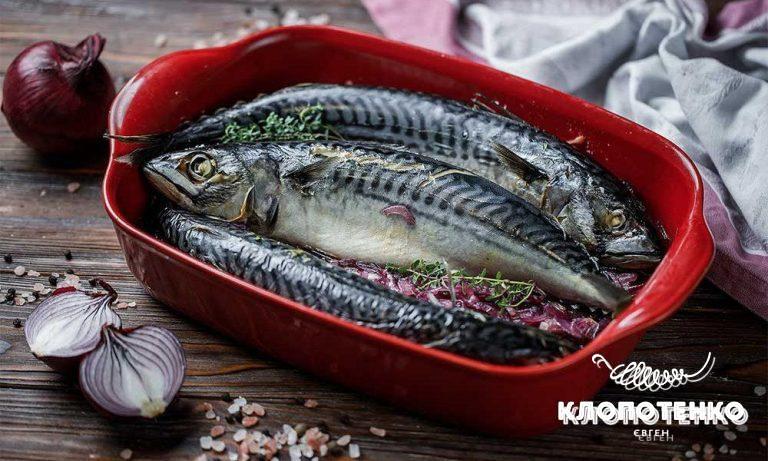 РибнеЧервона цибуля та винний оцет. Рецепт запеченої скумбрії з гарніром