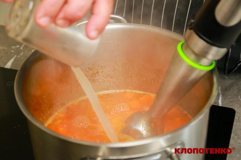 Перебийте блендером гарбузову масу прямо у каструлі.