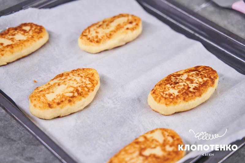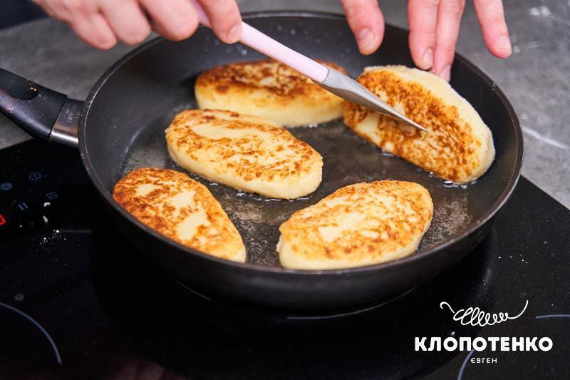Увімкніть духовку розігріватися до 180 градусів. Розігрійте пательню з 3 ст.л. олії. Обсмажте зрази з двох боків по 3 хвилини.