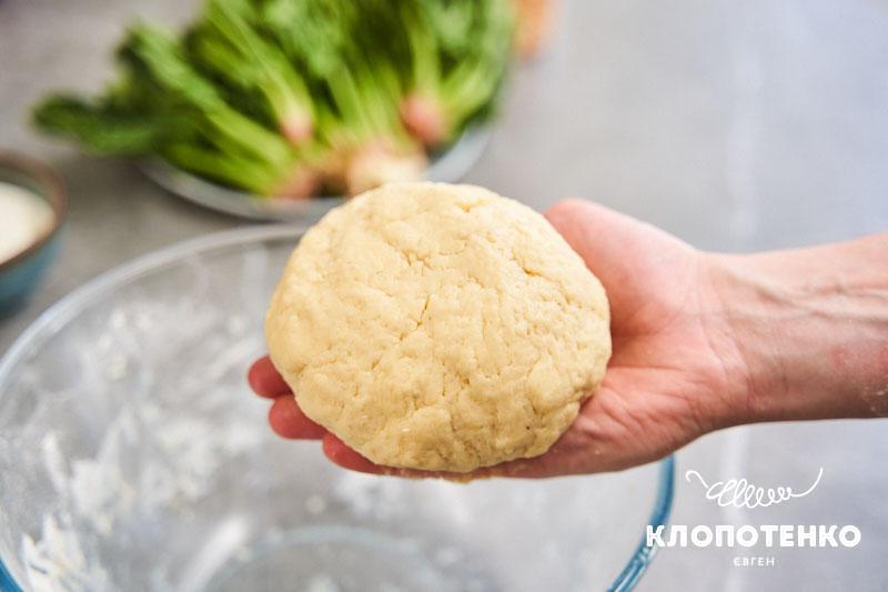 З готового тіста сформуйте кулю, загорніть у плівку та відправте в холодильник відпочити на 20-25 хвилин. У цей час увімкніть духовку розігріватися до 200 градусів.