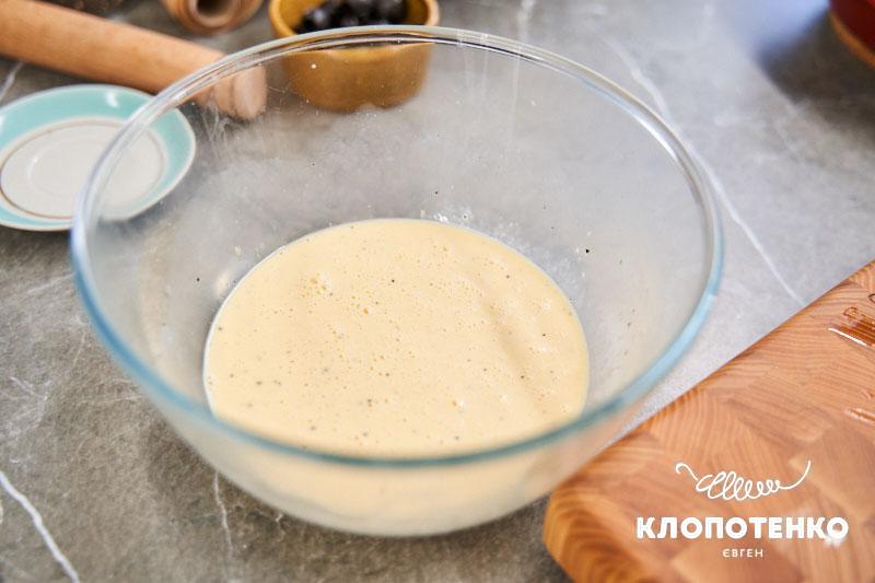 В окремій мисці змішайте до однорідного стану 100 мл вершків, 3 яйця та 2 дрібки солі.