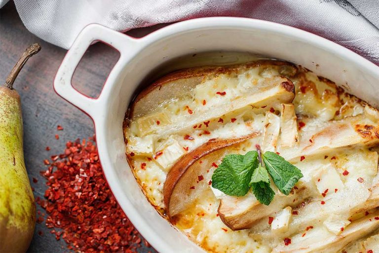 Груша з камамбером — класична страва, що готується доволі просто та швидко. Це саме той випадок, коли можна вдало поєднати сезонні фрукти та вишуканий сир, що лише підкреслить фруктовий смак. І навпаки груша відтіняє своєю солодкістю вершковий та горіховий камамбер. А якщо додати до цієї компанії трохи горішків та меду, виходить навдивовиж геніальне поєднання.