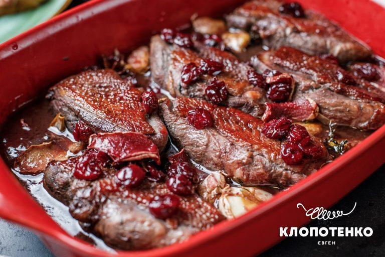 М'ясніУ кагорі та з вишнями. Запечена качина грудка за рецептом Євгена Клопотенка