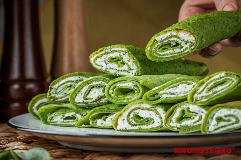 Вегетаріанські рецептиЗ кисломолочним сиром та зеленню. Шпинатні млинці від Євгена Клопотенка